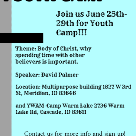 उत्तरपश्चिम युवा शिविर अप्रिल २४, २०२६ ख्रीष्टको शरीर - किन अन्य विश्वासीहरूसँग समय बिताउनु महत्त्वपूर्ण छ?. यो कार्यक्रम रद्द गरिएको छ।. थप जानकारीको लागि तपाईंले हाम्रो कार्यालयमा कल गर्न सक्नुहुन्छ - २०८-८८८-३३८० वा हामीलाई **** @ ******** od.org गर्नुहोस् !